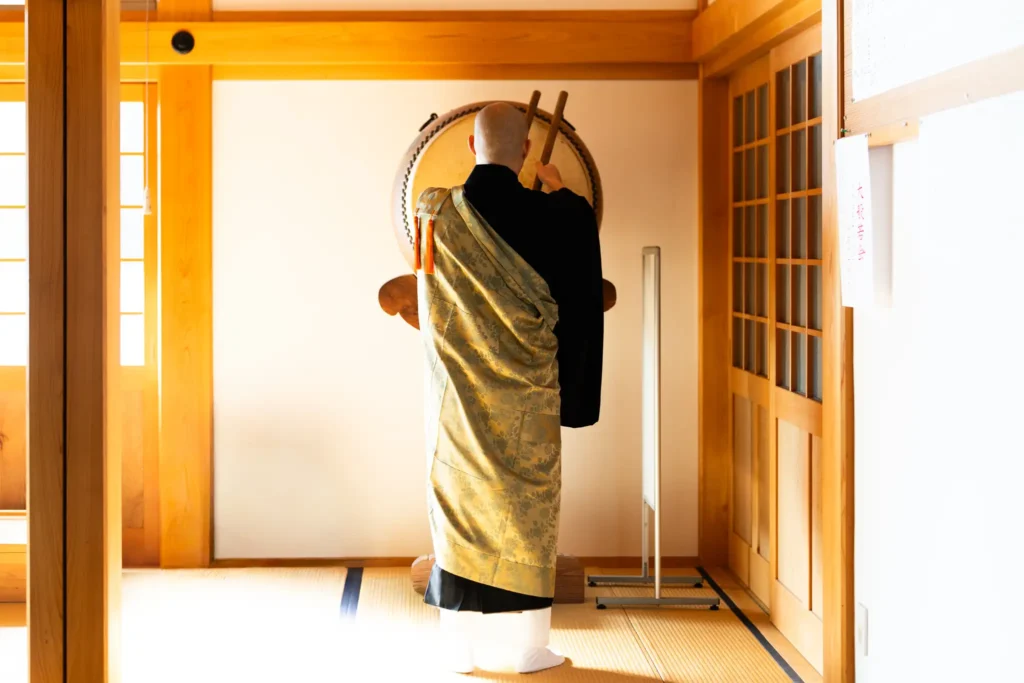 特徴ある太鼓の音とともに始まる法要