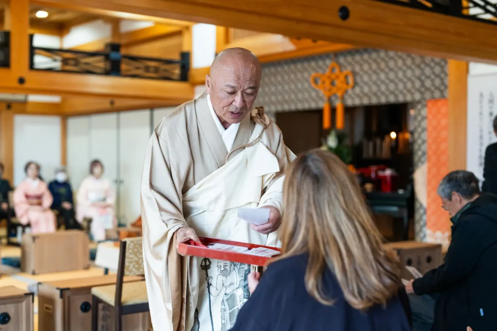 祈祷の際には「般若札」と呼ばれるお札が供えられ、法要後には厄除けのお札として檀信徒の皆さまへ授与されます。
