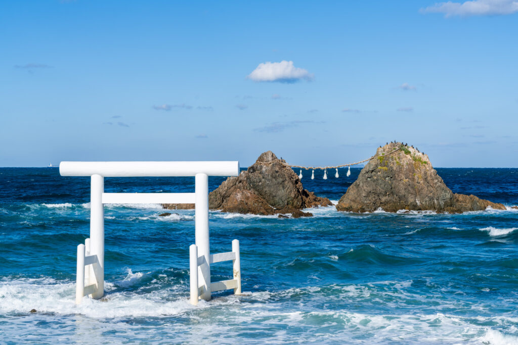 - 観光地として知られる「二見ヶ浦・夫婦岩」