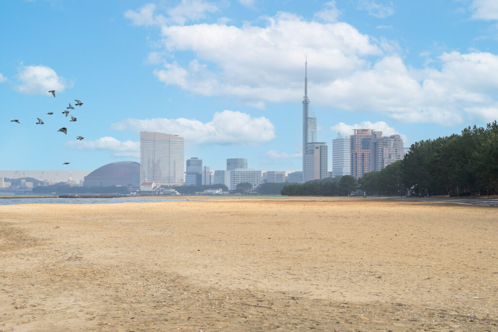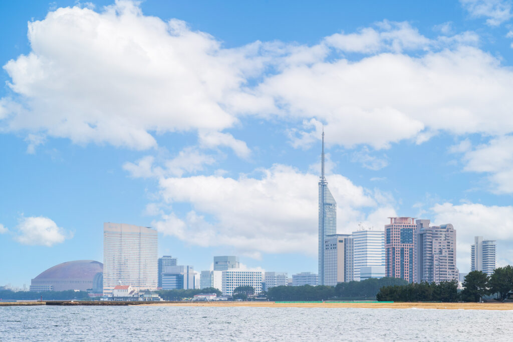 都市と海が隣り合う福岡ならではの景色は、徳門寺周辺の環境をイメージしていただく補足写真として活用しています。